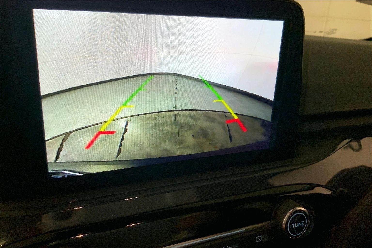 - The vehicle is equipped with a camera that displays an image of the area behind the vehicle on an interior display.