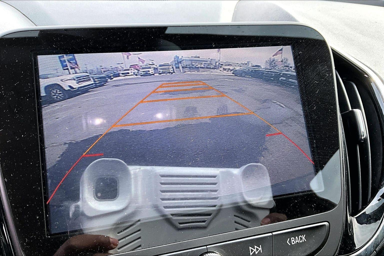 - The vehicle is equipped with a camera that displays an image of the area behind the vehicle on an interior display.
