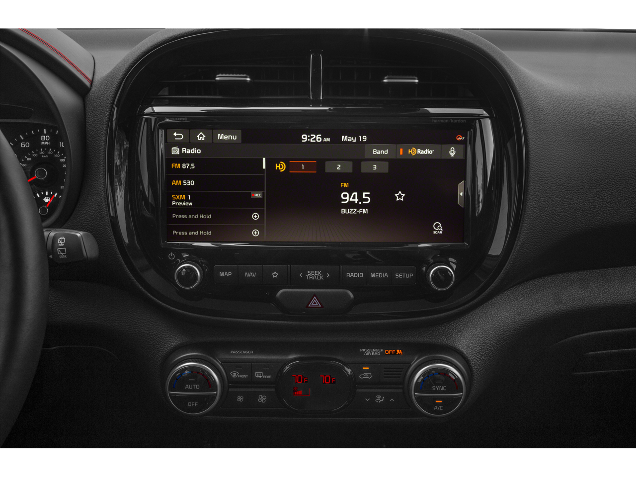 - Radio w/Seek-Scan, Clock, Speed Compensated Volume Control, Aux Audio Input Jack, Steering Wheel Controls and Voice Activation