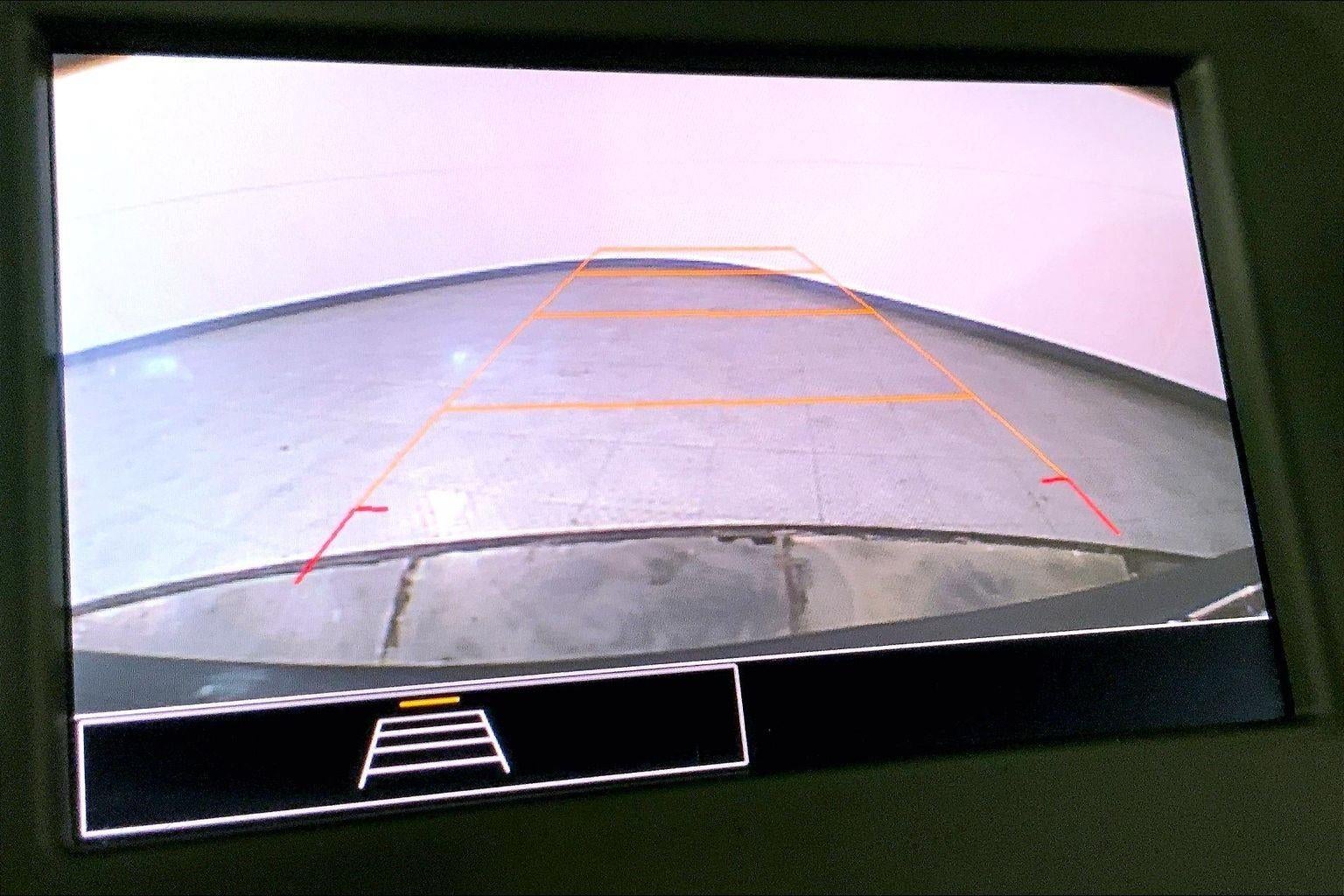 - The vehicle is equipped with a camera that displays an image of the area behind the vehicle on an interior display.