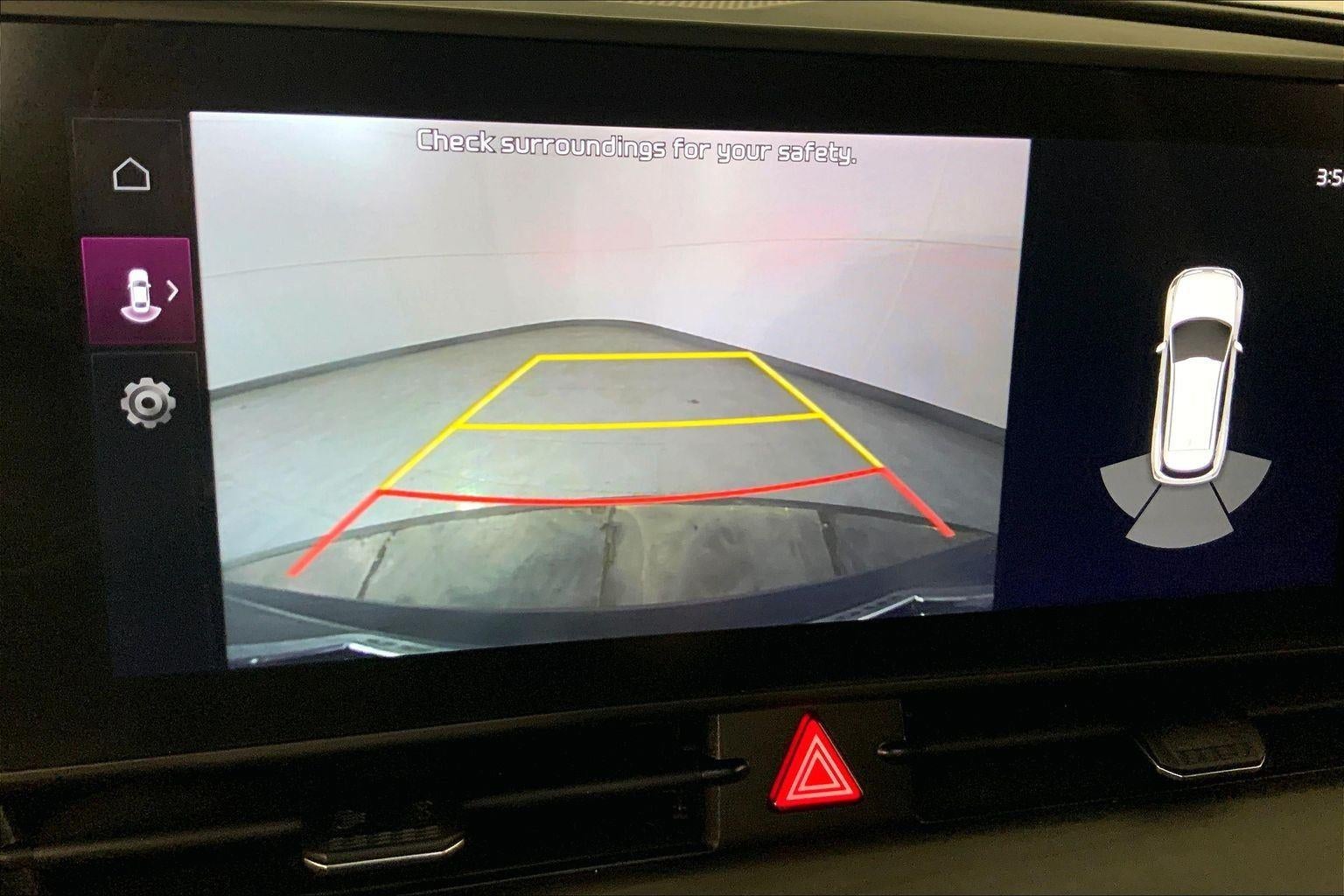 - The vehicle is equipped with a camera that displays an image of the area behind the vehicle on an interior display.