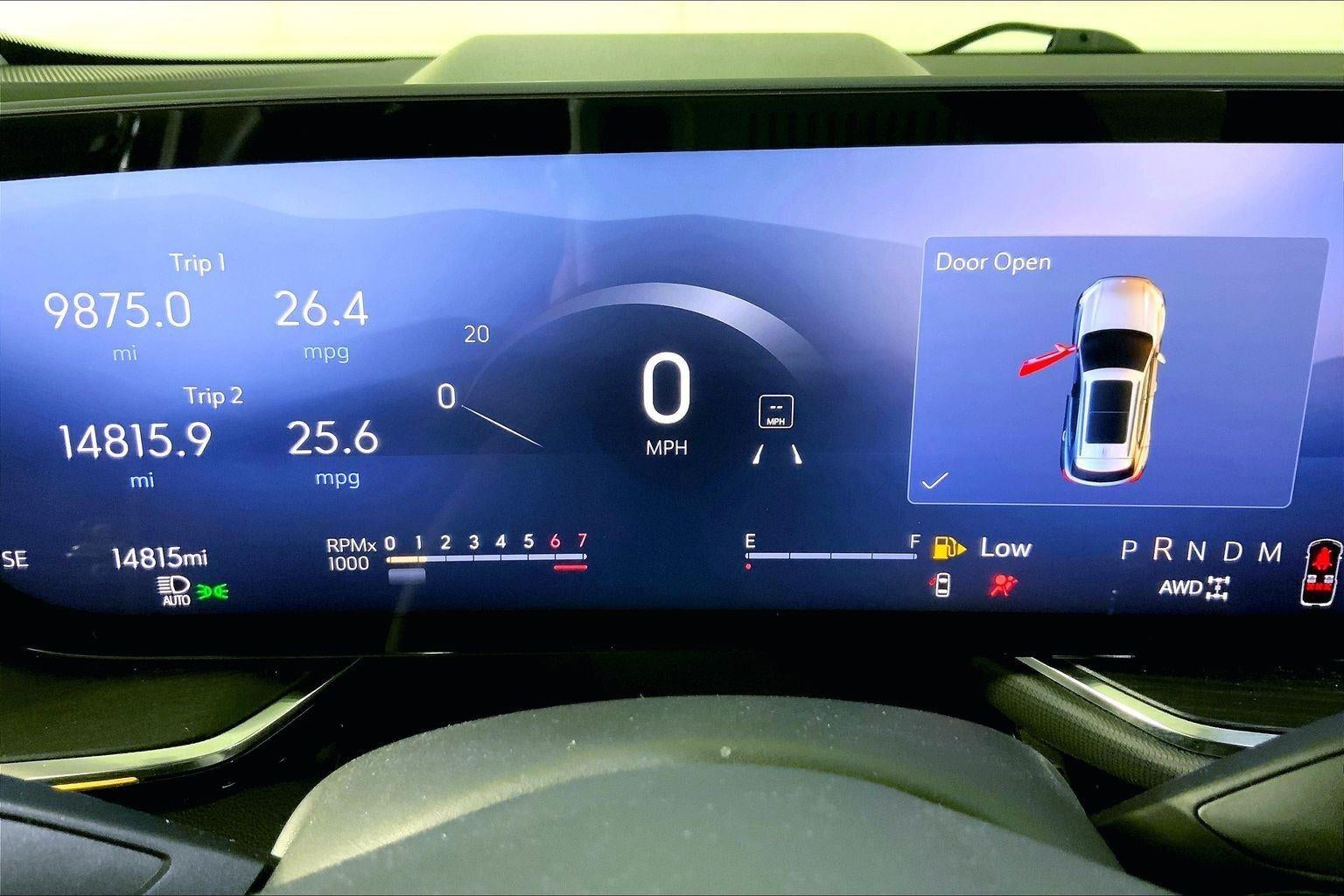 - The vehicle is equipped with a camera that displays an image of the area behind the vehicle on an interior display.