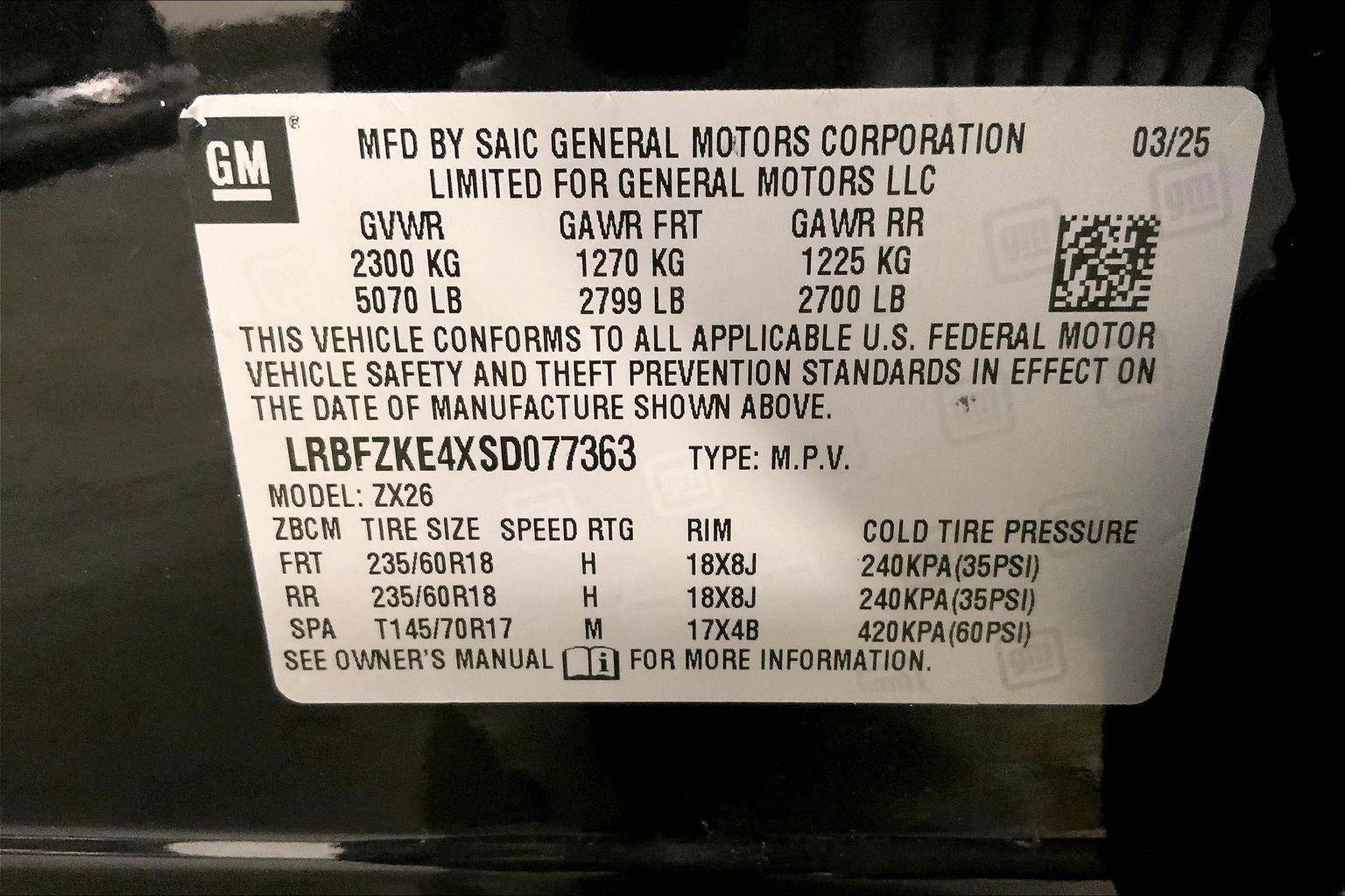 - Tires, P235/60R18 all-season